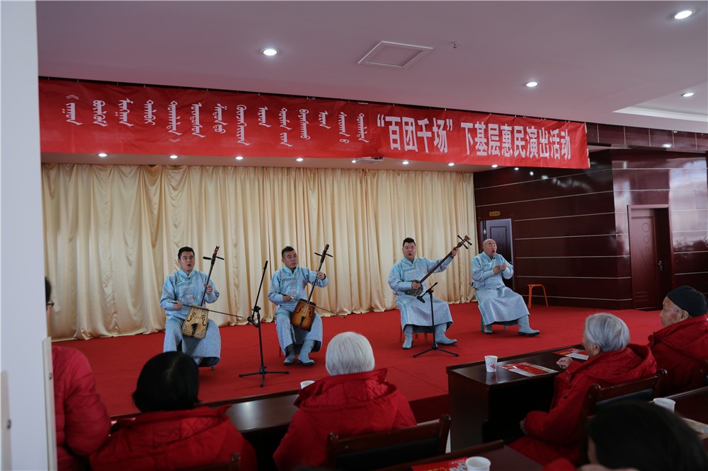 2017年1月10至12日乌审旗乌兰牧骑在陕西省榆林市靖边县人民礼堂、敬老院举行文艺惠民演出。