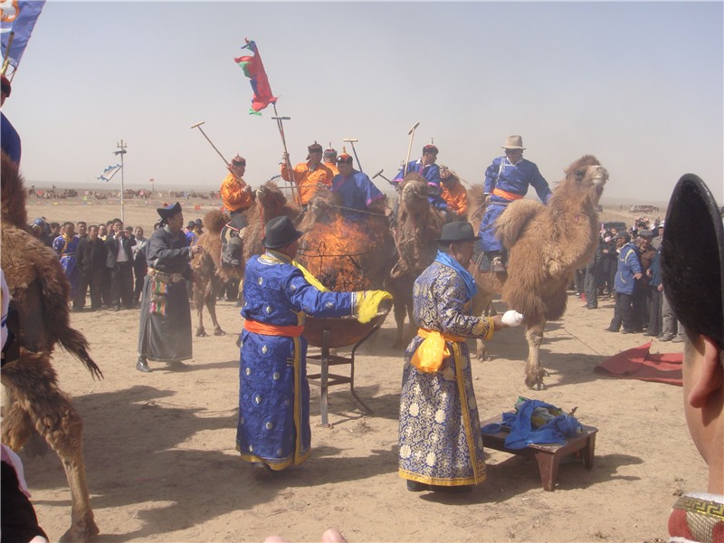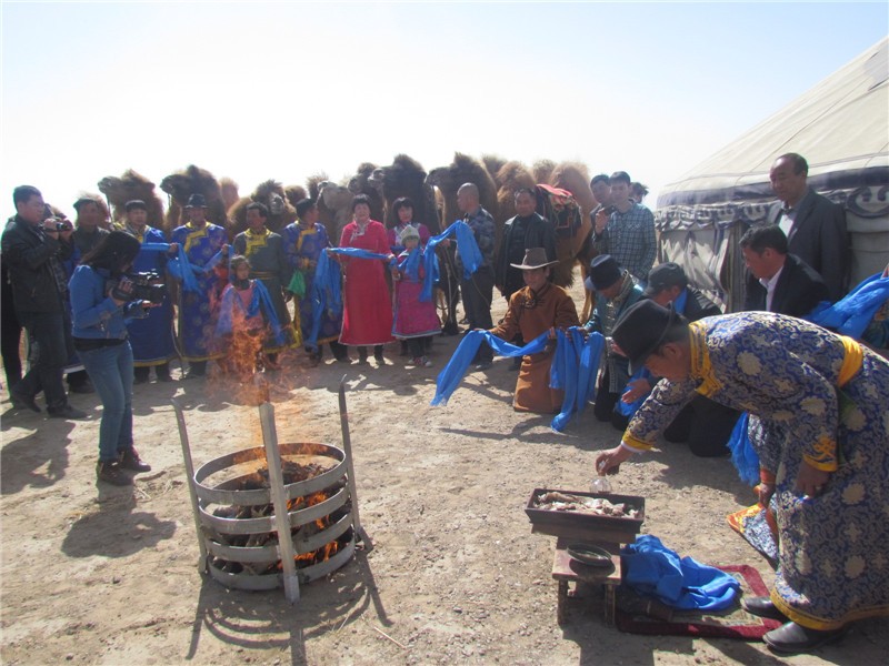 杭锦蒙古人母驼圣火祭祀,是流传于民间的一种集自然信仰、传统生产、人文思想为一体的祭祀文化活动。关于母驼祭祀的记载起源于蒙元时期。成吉思汗西征时,军队运输需要骆驼,因此养驼业开始兴起,明清达到鼎盛。凡是养驼的牧户,都有祭祀母驼圣火习俗。杭锦旗气候干旱、植被稀薄,库布齐沙漠横亘东西,骆驼成为当地牧民最为重要的交通用具。因此,牧民们为了表达对骆驼的感怀之情和敬仰之意,并希望骆驼繁衍兴旺,生活更加富足,由此产生了母驼圣火祭祀这一习俗。