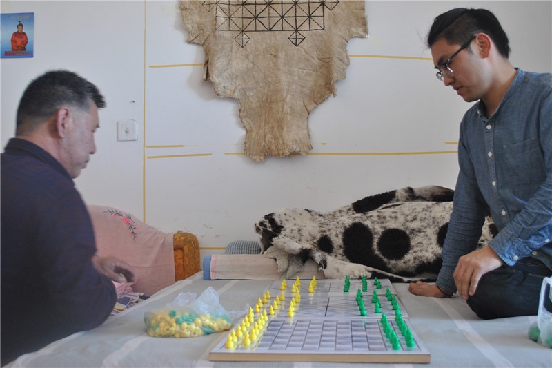 我们已经将这个传统文化加入到蒙古族学校的兴趣课,而且将以发掘出的棋类全都收入了书本中,以登记在册的就有二十多种蒙古跳棋。而且已经初步形成了蒙古跳棋的规模化生产,已经有制作完成的棋子、棋盘。