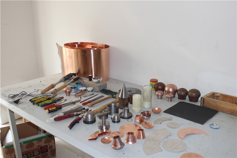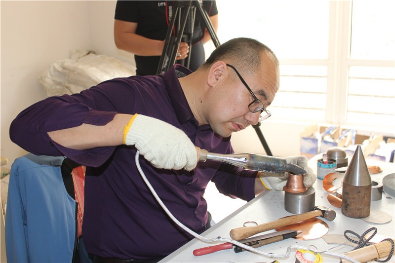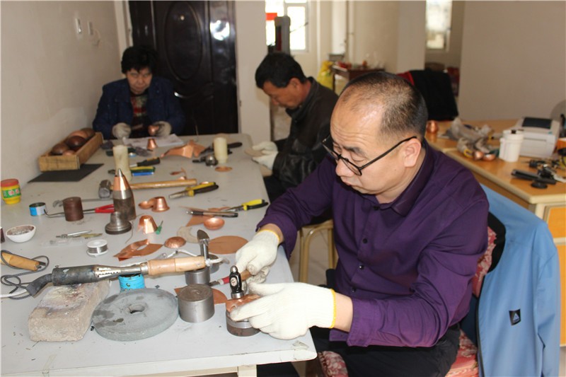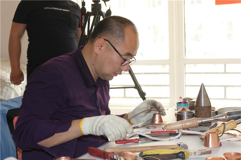 蒙医铜火罐必须使用纯铜制作,紫铜对北方的游牧蒙古族来讲,处了金和银以外,特别稀有的金属。因鄂尔多斯距离榆林、西安等地区较近,具有独特的地理优势,加之杭锦旗的铜匠手艺灵巧,自古以来杭锦旗的蒙医铜火罐特别出名,铜火罐全部用手工制作且质量也特别好。铜火罐一般是由父子(家庭)、或师徒、学堂等形式进行传承。从原杭盖王爷的专属银匠扎木苏到第六代蒙医铜火罐传承人孟克道尔计,铜火罐已经有120多年的历史。制作步骤包括下料、平整、焊接、打磨等一系列工序。