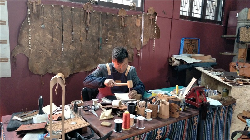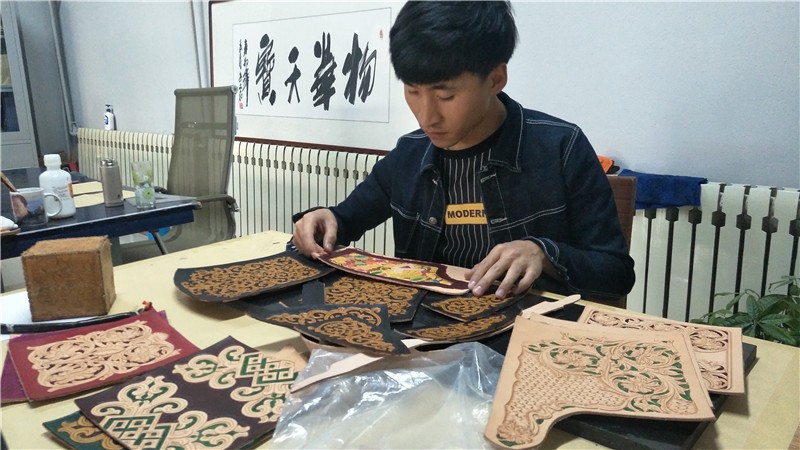 蒙古族皮雕技艺以天然鞣制的牛皮为主要原材料制作出皮袄,皮帽,马靴,毛皮被,皮达令,马鞍等。皮毛与蒙古族的生活是离不开的,也和皮制品结下了不解之缘。