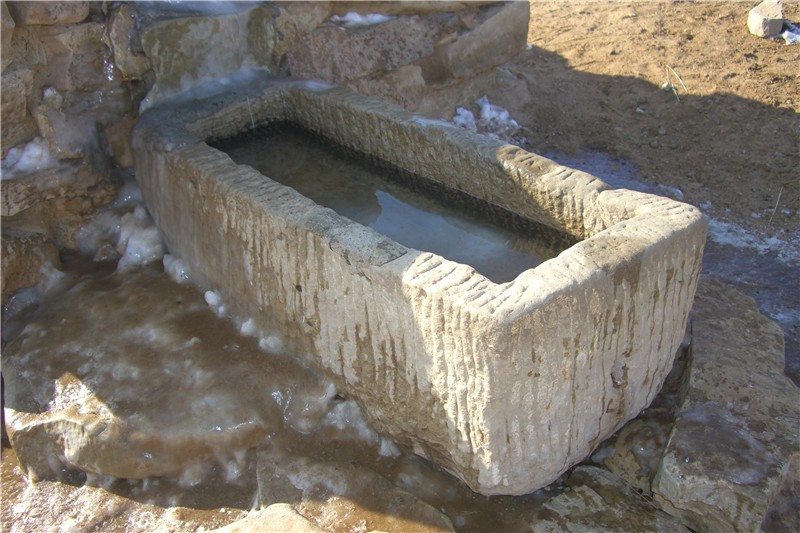 其日嘎井专用水槽,石头凿成夏不怕太阳冬不怕冰冻经久耐用。