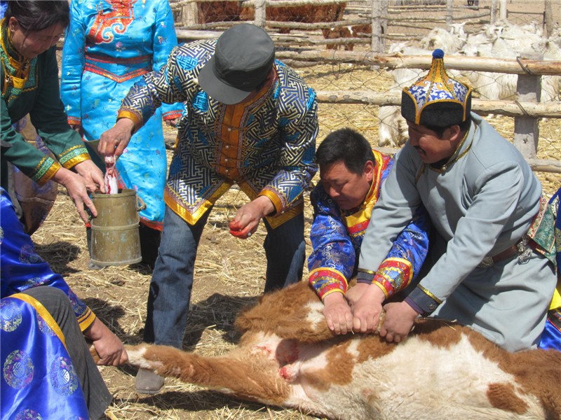 蒙古人五畜阉术,主要是为了减少牲畜的不良繁殖,增加牲畜育肥效果。去势后的幼畜性情温驯,宜于生长,便于管理,适于抓膘,且肉质鲜嫩又膻味小,食用可口。羔羊一般在4~6月龄、牛犊多数2—3岁,马驹子是2—4岁时进行阉割为宜。据记载11—12世纪时期五畜阉割术在蒙古人游牧生产生活中广为应用,并一直沿用至今。