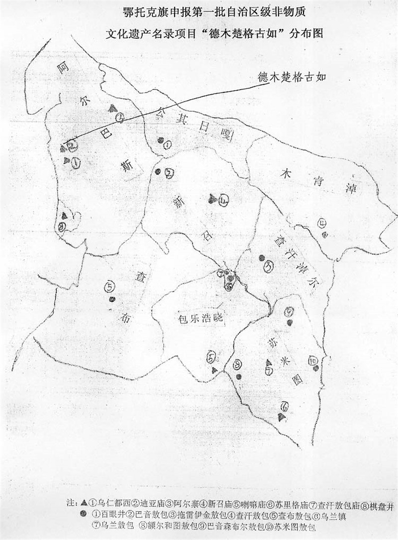 德木楚格古如系喇嘛教(黄教派)里为数不多的男女密宗的一种。它以一个主教徒(男),必须是在塔尔诗黄教派中取得《那勒珠日瓦》身份的主持大喇嘛与他的直属教徒,若干名达嘛(女喇嘛)共同完成。其说唱内容为引导人们要讲道理、崇尚文明,不做恶事,从而达到讲求道德,社会和谐,最后要全民族共同走向繁荣发展的目的。