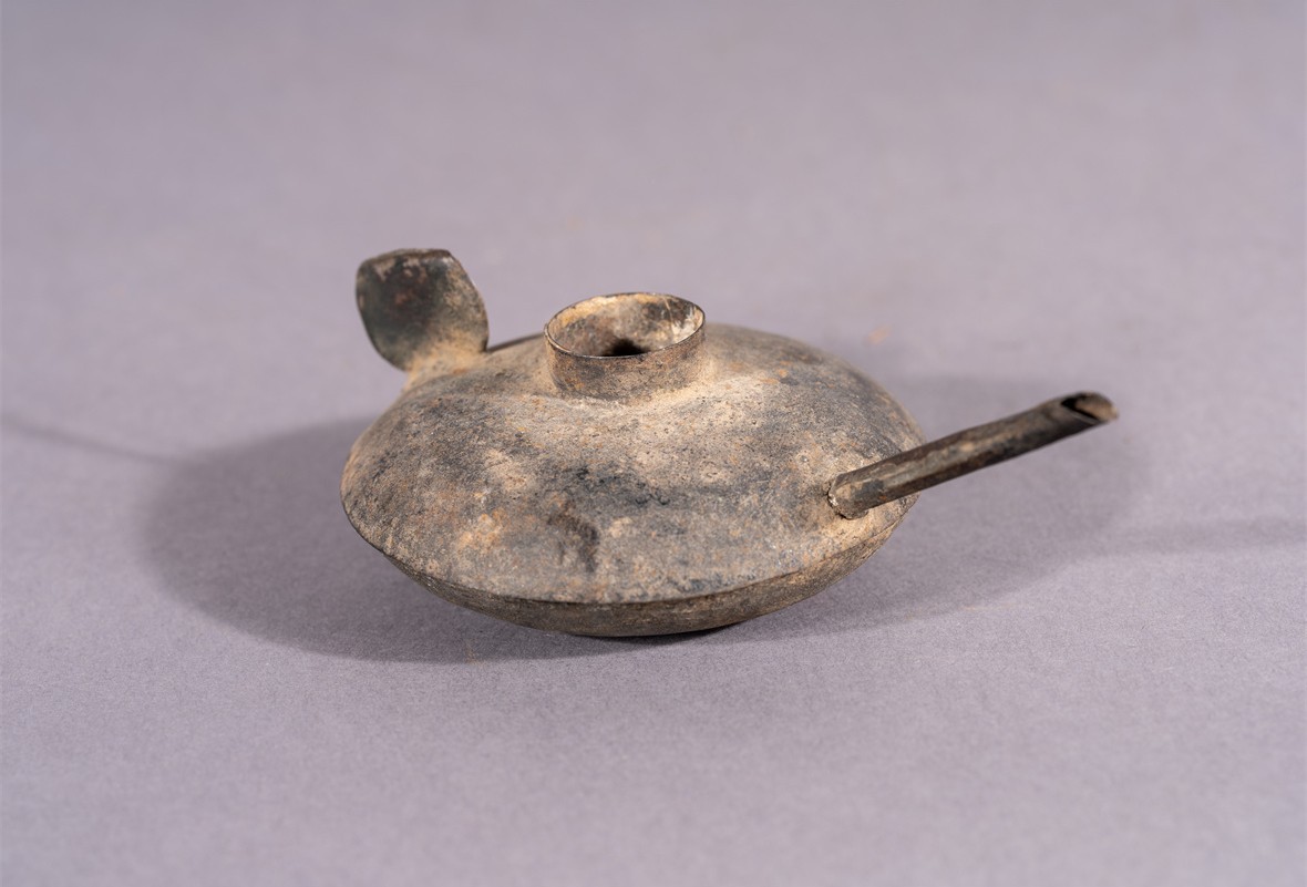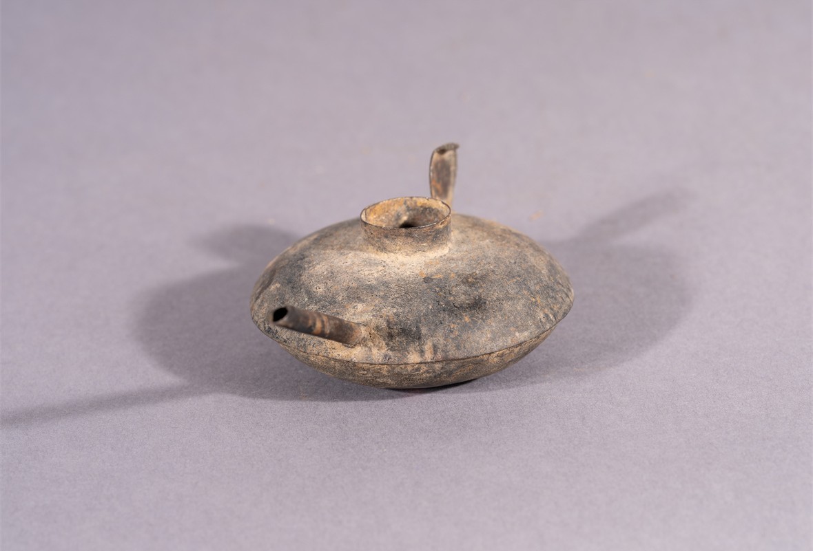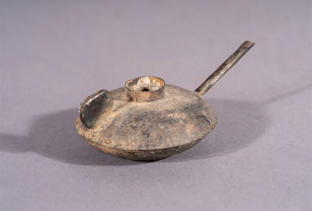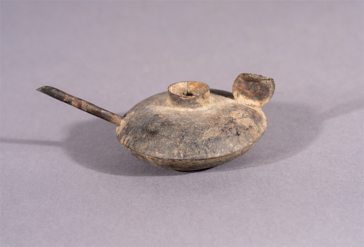 油灯,材质为铁,征集购买,1936年前后,革命工作者在三段地工作时使用的油灯。现存于三段地革命历史纪念馆。