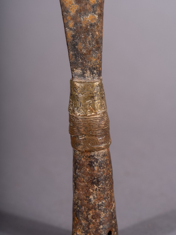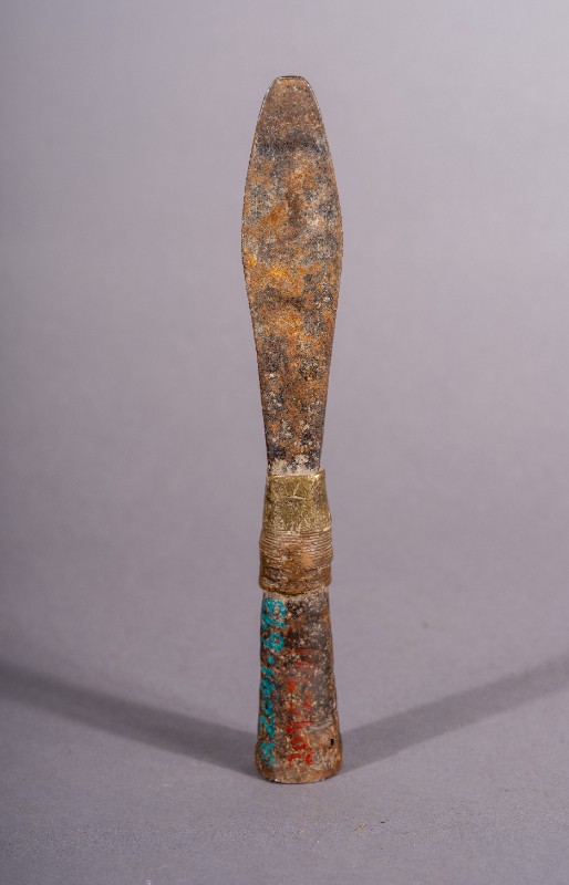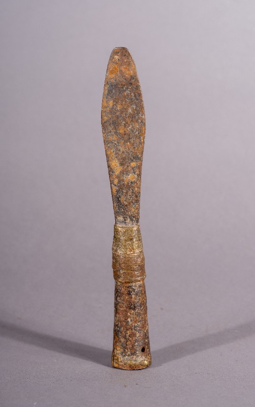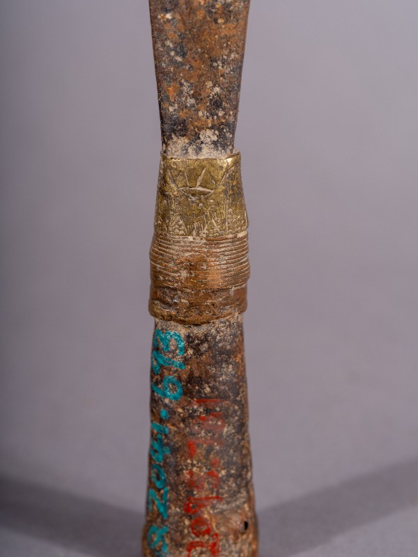 矛头,材质为铁、铜,表面有锈迹。解放战争时期,三段地根据地军民在中国共产党的领导下使用过的长矛头。现存于三段地革命历史纪念馆。
