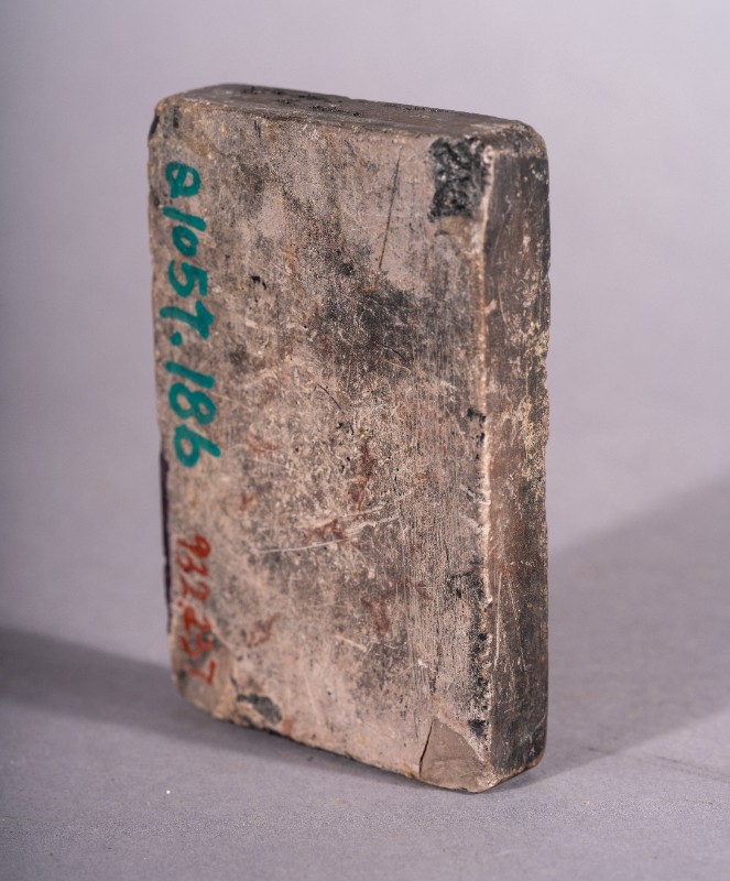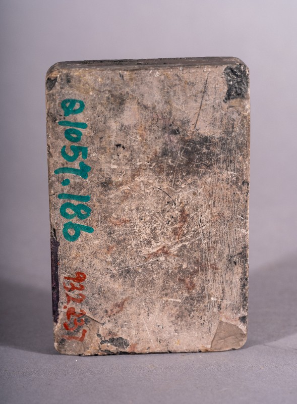 石质砚台,材质为石,器身微瑕。1960年左右,鄂托克旗扫盲工作者使用过的史砚台。现存于三段地革命历史纪念馆。