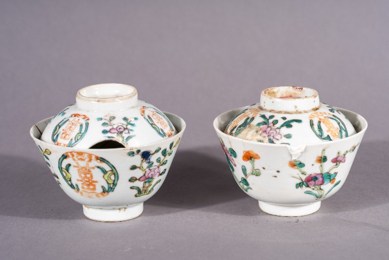 小瓷杯,材质为白瓷,捐赠物品,器身有残损。清朝同治年间,茶盏一对,刻有“王如诚造、同治年制”,当时三段地开明人士使用。现存于三段地革命历史纪念馆。