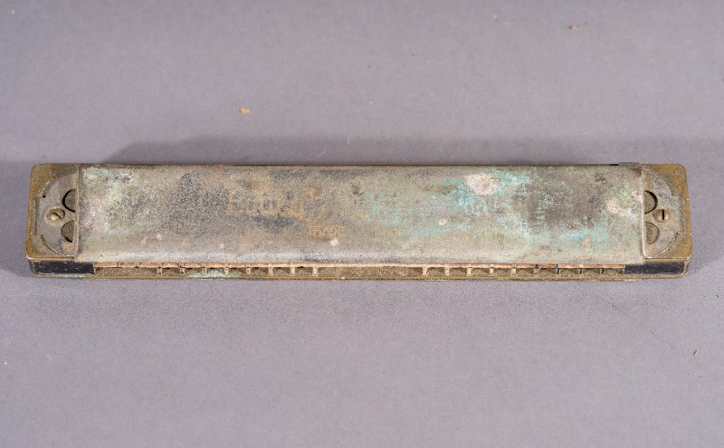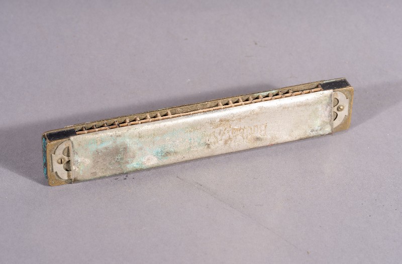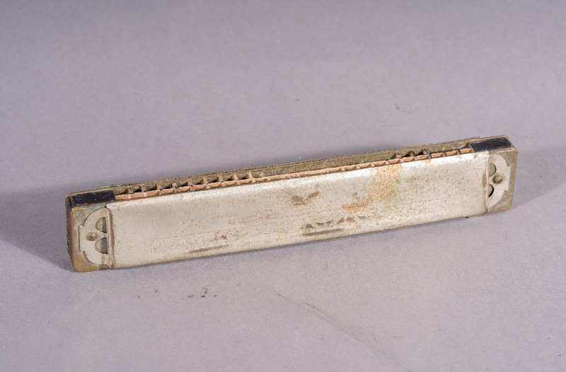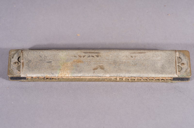 蝴蝶口琴,材质为铝、木,器身微残。民国时期,鄂托克旗蒙古族贵族使用过的日本进口蝴蝶牌口琴。现存于三段地革命历史纪念馆。