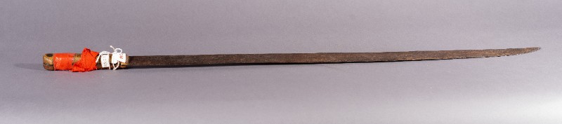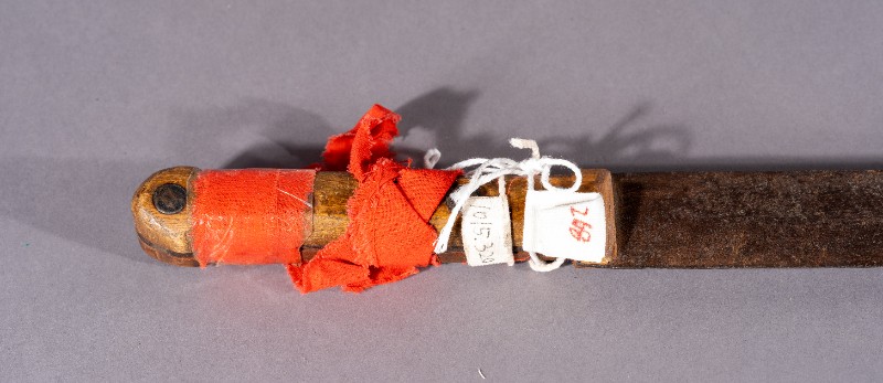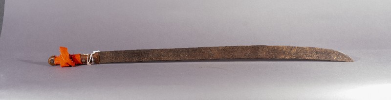 马刀,材质为铁,器身基本完整。1940年左右,鄂托克旗进步群众在党的领导下开展抗日救国,反对军阀所使用的马刀。现存于三段地革命历史纪念馆。