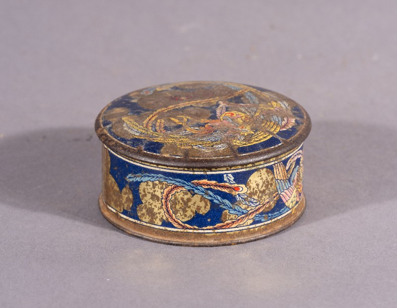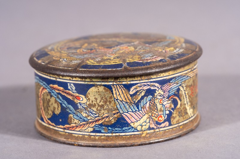 丹凤牌香皂盒(铁皮),材质为铁,器身基本完整。民国时期,鄂托克旗上层人士所使用过的丹凤牌铁皮香皂盒,标有“锦生本行监制”,印有凤凰图案。现存于三段地革命历史纪念馆。