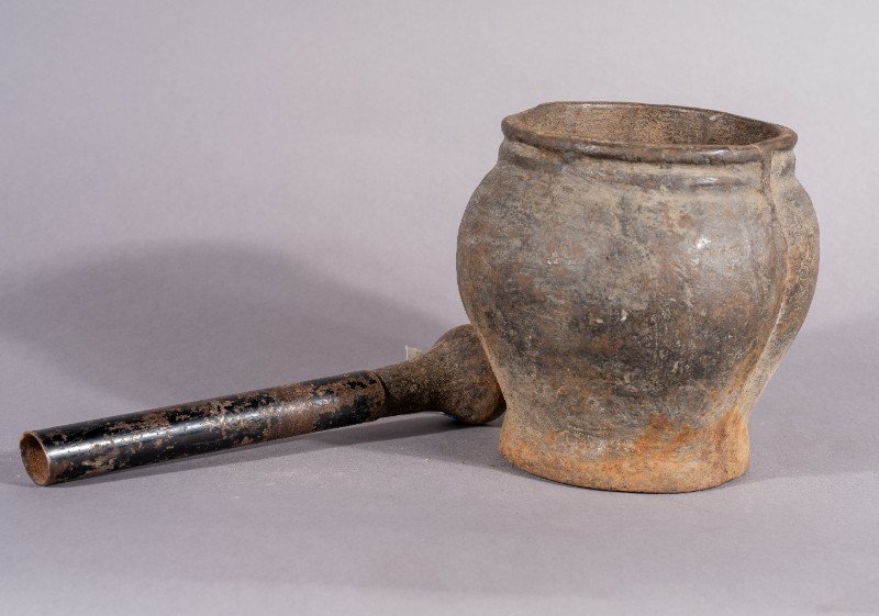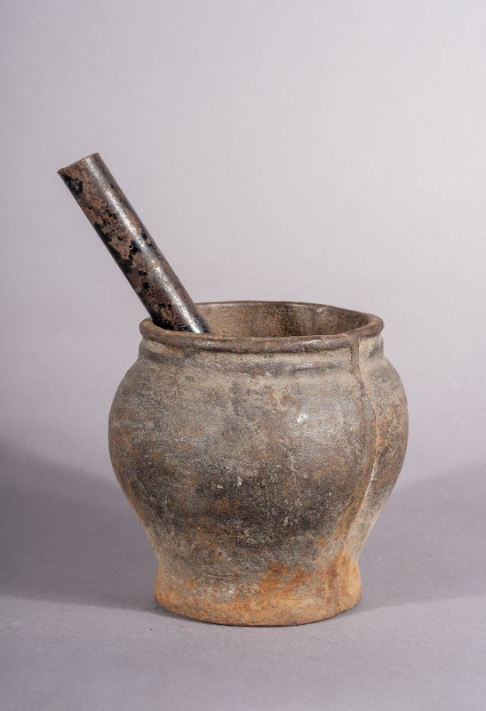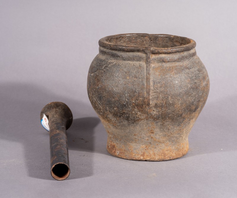 捣药钵子,材质为铁,器身有腐锈。上世纪50年代,三段地用于救治农牧民伤病,撵制中草药与蒙药的药钵子。现存于三段地革命历史纪念馆。