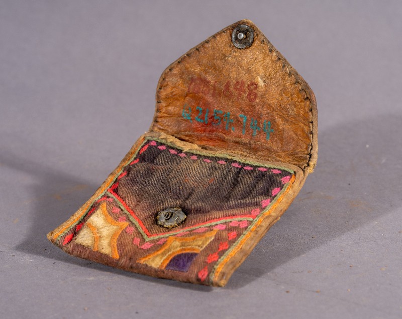 刺绣水烟袋,材质为布,器身基本完整。民国时期,三段地爱国人士用过的刺绣水烟袋。现存于三段地革命历史纪念馆。