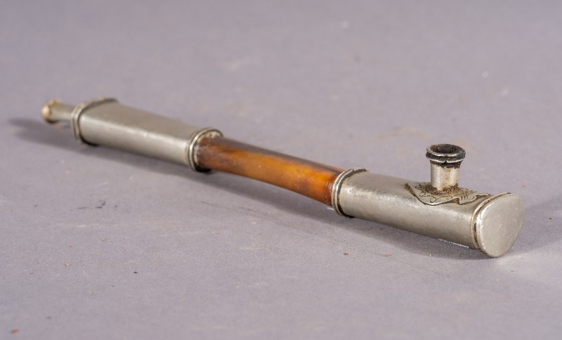 水烟锅,材质为银、骨,器身基本完整。民国时期,三段地爱国人士用过的水烟锅。现存于三段地革命历史纪念馆。