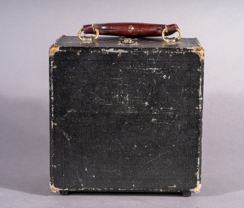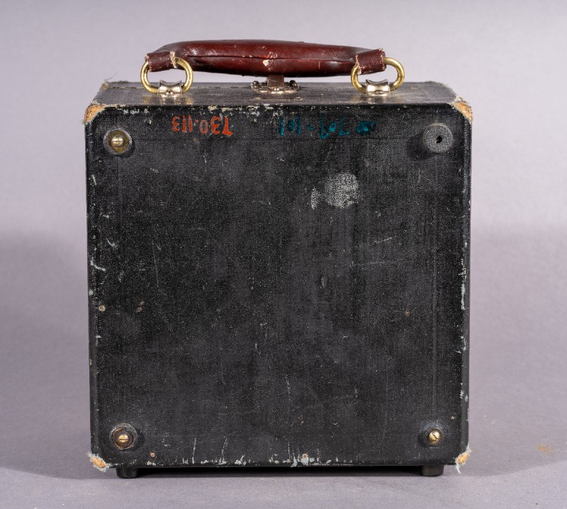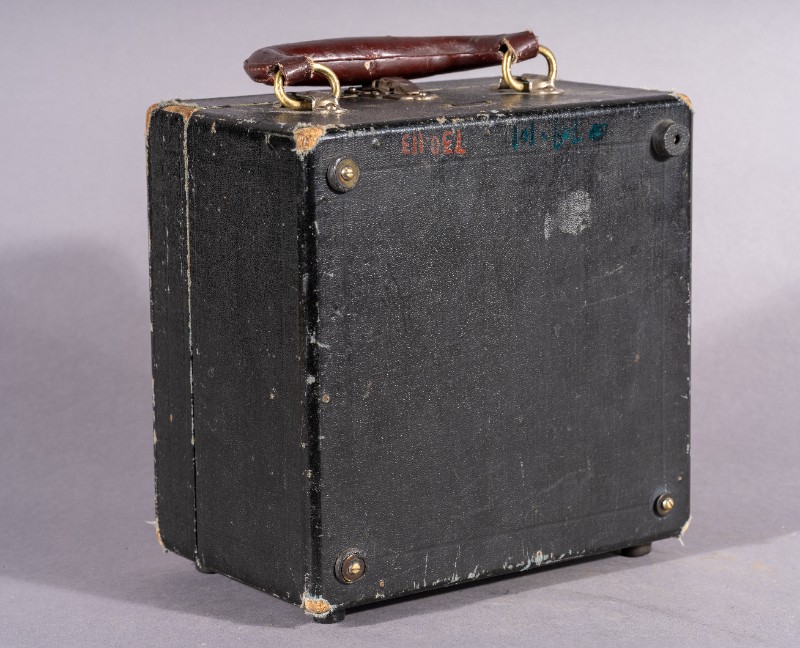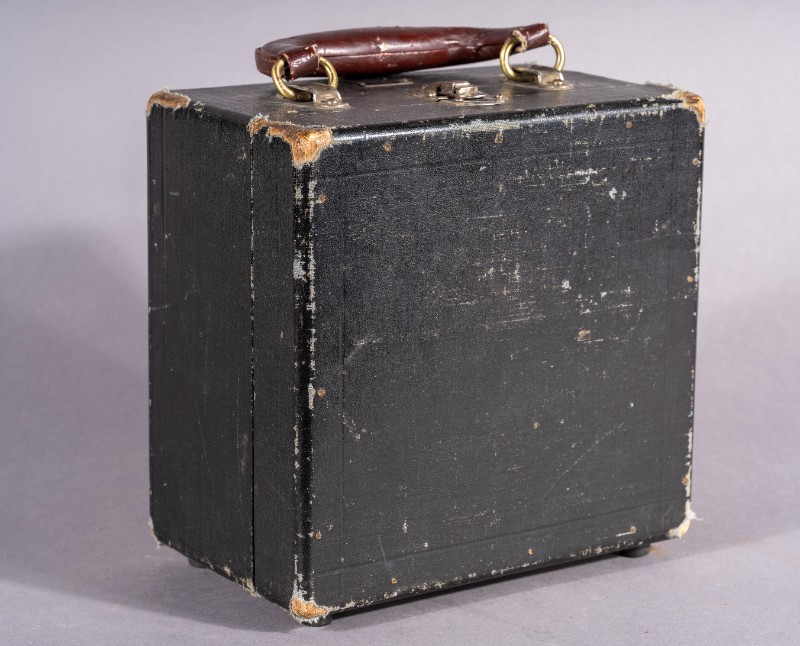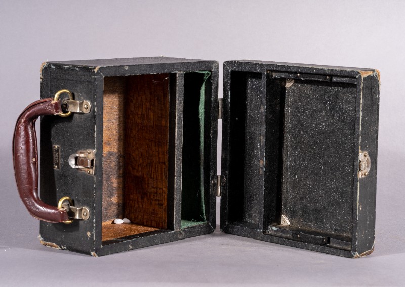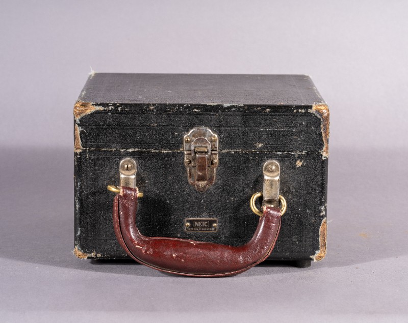 医药箱,质地木,上世纪60年代,鄂托克草原上赤脚医生所使用过的药箱,上面标有“日本电气计器株式会社”字样,微残。现藏于三段地革命历史纪念馆。