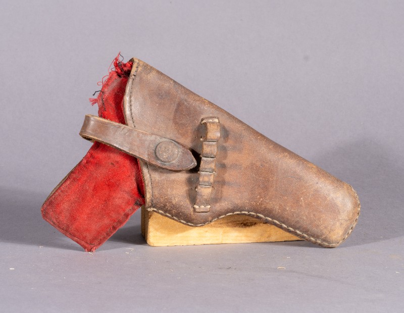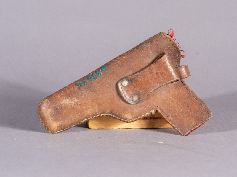 手枪套,抗日战争时期,活跃在三段地的八路军所使用的手枪套,微残。现藏于三段地革命历史纪念馆。