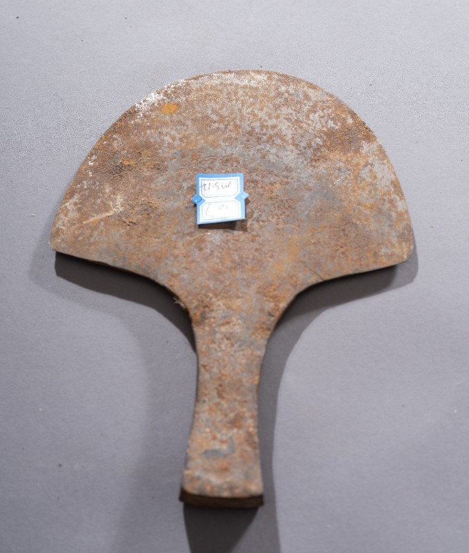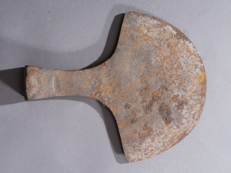 民国时期,桃力民地区基层党支部用于伪装身份打探消息的皮匠工具,材质为铁,器型较完整,表面有锈迹,现存于桃力民抗日根据地史实陈列馆。