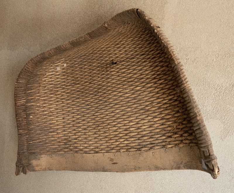 抗日战争时期,新三师官兵驻扎在桃力民地区时炊事班使用过的簸箕。材质为柳条,器型完整。现存于桃力民抗日革命根据地旧址集群新三师政治部复原院落。