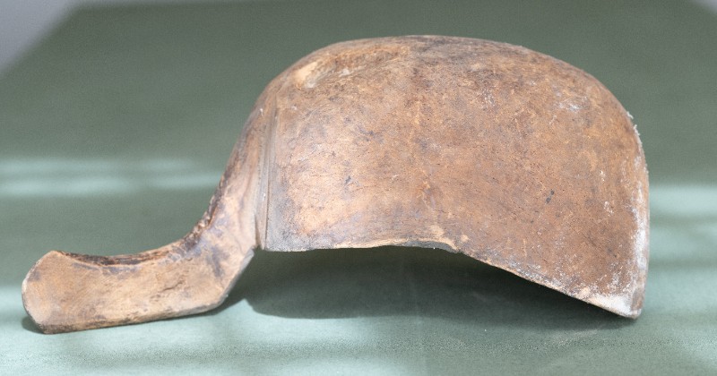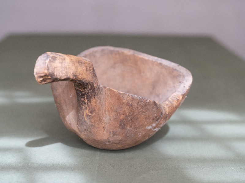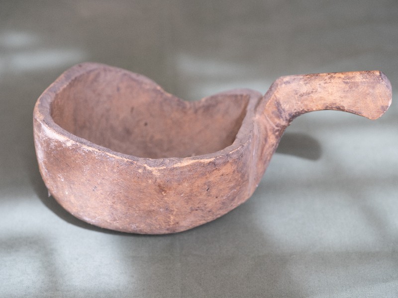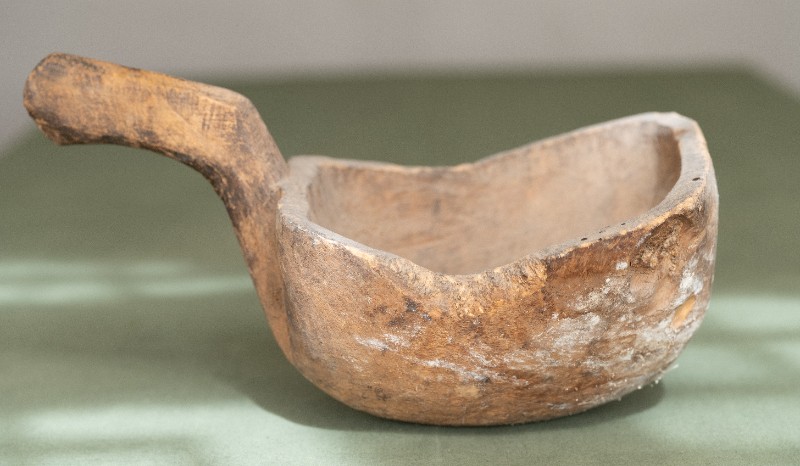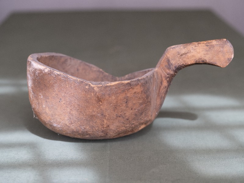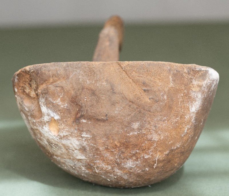 抗日战争时期,新三师官兵驻扎在桃力民地区时炊事班使用过的粮铲。材质为木,器型较完整,表面磨损。现存于桃力民抗日革命根据地旧址集群新三师政治部复原院落。