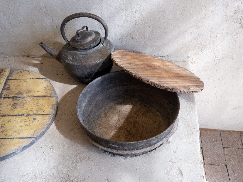 民国时期,中共绥蒙工委工作人员在桃力民地区工作时使用过的铜锅和铜壶,材质为黄铜。民间征集、器型较完整 表面有锈蚀。现存于桃力民抗日革命根据地旧址集群绥蒙工委复原院落。
