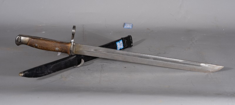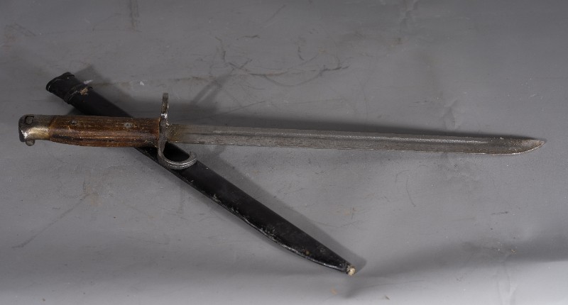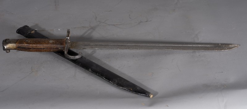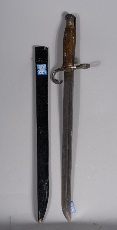 抗日战争时期,八路军骑兵团官兵在桃力民地区使用过的军刺,材质为铁,表面有锈蚀。现存于桃力民抗日根据地史实陈列馆。