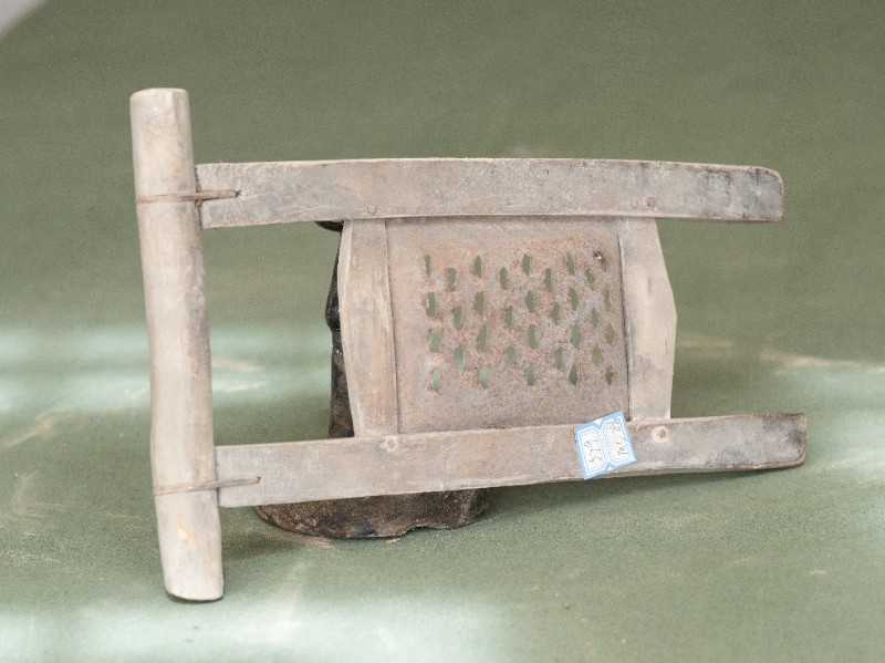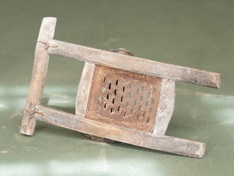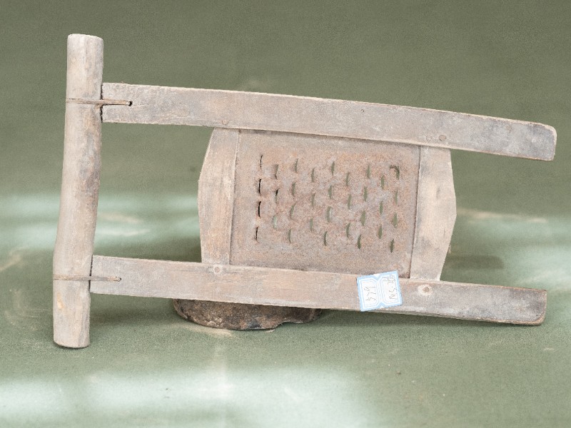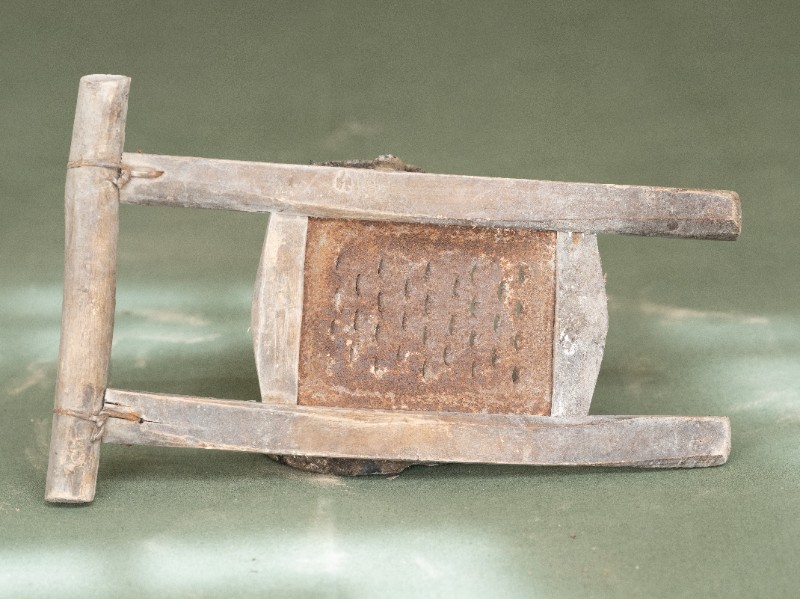抗日战争时期,新三师官兵驻扎在桃力民地区时炊事班使用过的擦子。材质为铁、木,器型完整,表面有锈迹。现存于桃力民抗日革命根据地旧址集群新三师政治部复原院落。