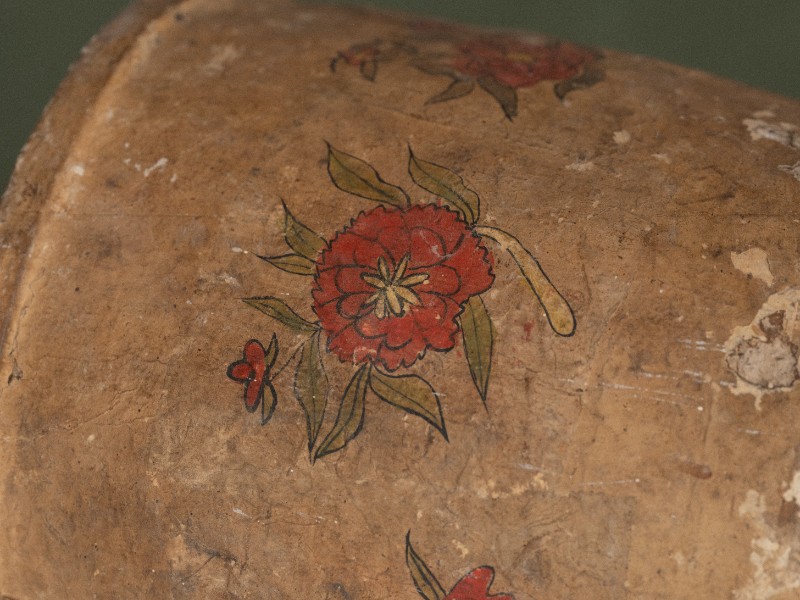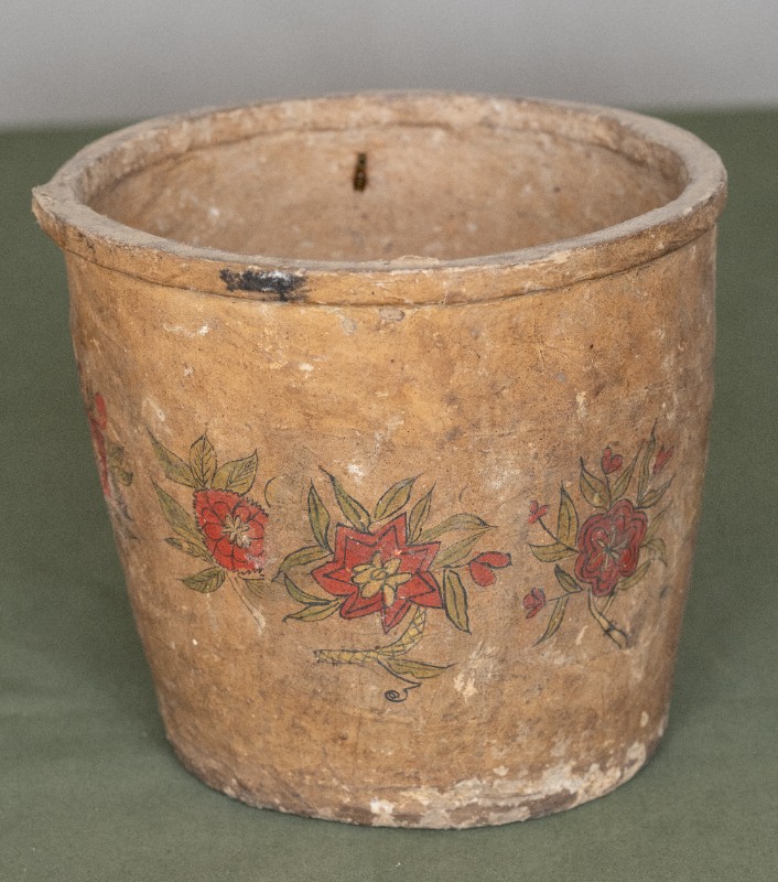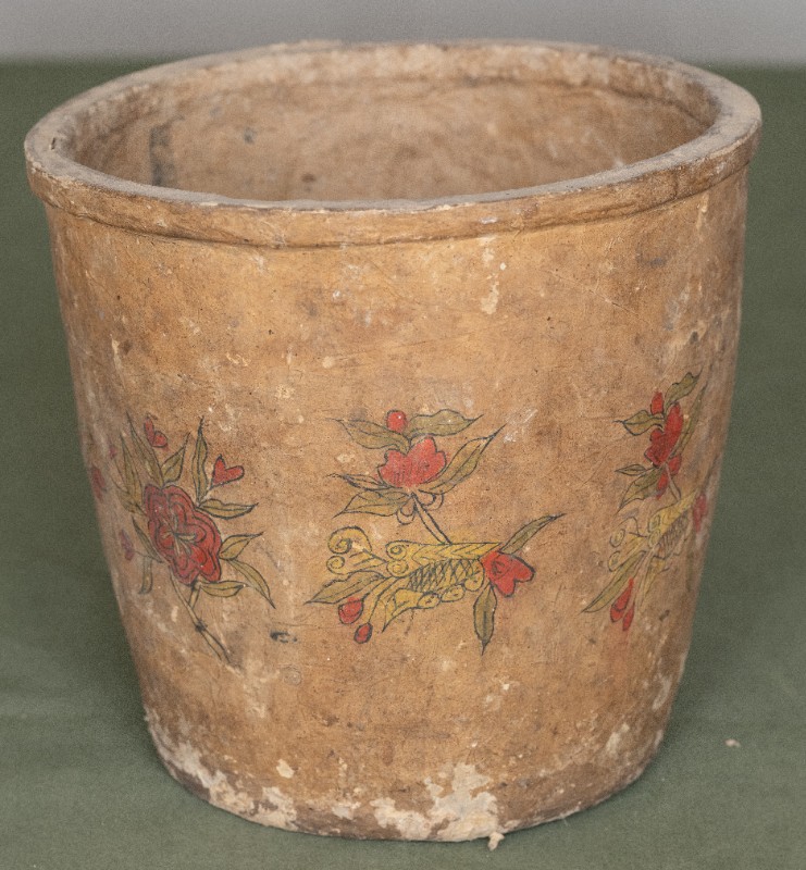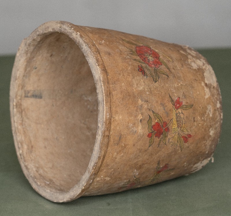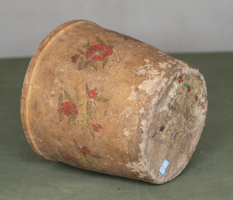 抗日战争时期,新三师官兵驻扎在桃力民地区时炊事班使用过的印花纸瓮。材质为纸,器型较完整,表面有轻微破损。现存于桃力民抗日革命根据地旧址集群新三师政治部复原院落。