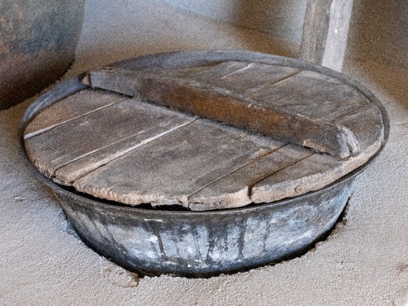 抗日战争时期,新三师官兵驻扎在桃力民地区时炊事班战士使用过的铁锅。材质为铁。民间征集、器型完整。现存于桃力民抗日革命根据地旧址集群新三师政治部复原院落。