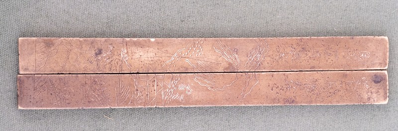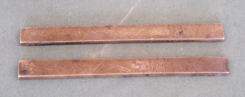 民国时期,伊克昭盟工委工作人员在桃力民地区工作时使用过的镇尺,材质为黄铜,尺身印有“民国二十二年六月,峯弟纪存”字样。器型完整。现存于桃力民抗日革命根据地旧址集群伊盟工委复原院落。
