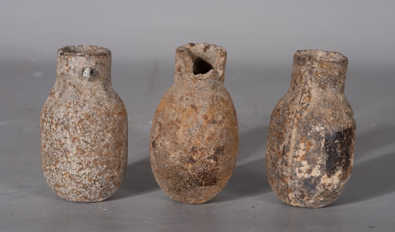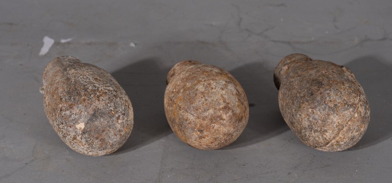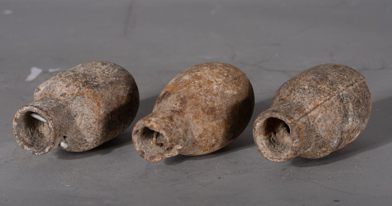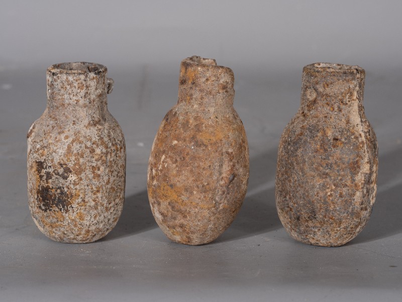 抗日战争时期,桃力民抗日自卫军在桃力民地区自制的手榴弹,材质为铁,器型残缺,表面有锈迹,无引线等。现存于桃力民抗日根据地史实陈列馆。