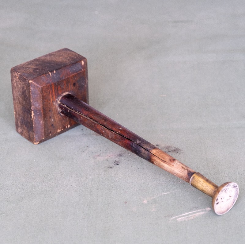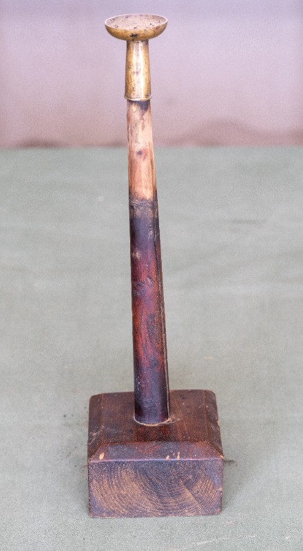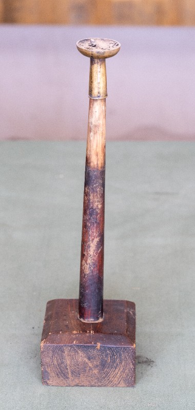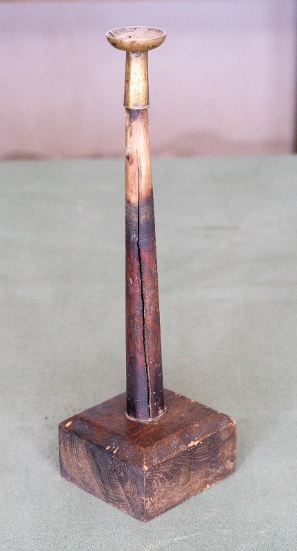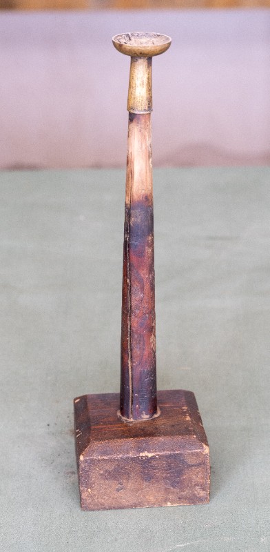 民国时期,中共绥蒙工委工作人员在桃力民地区工作时使用过的木座铜油灯,材质为木、黄铜。民间征集、器型完整。现存于桃力民抗日革命根据地旧址集群绥蒙工委复原院落。