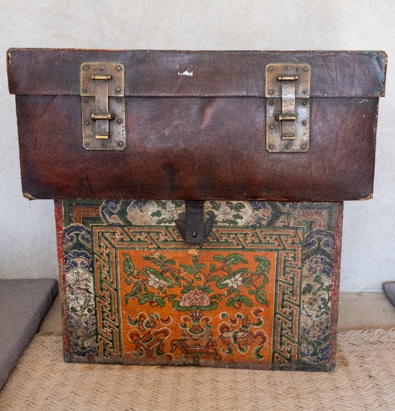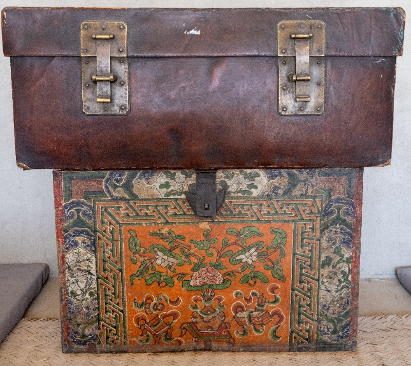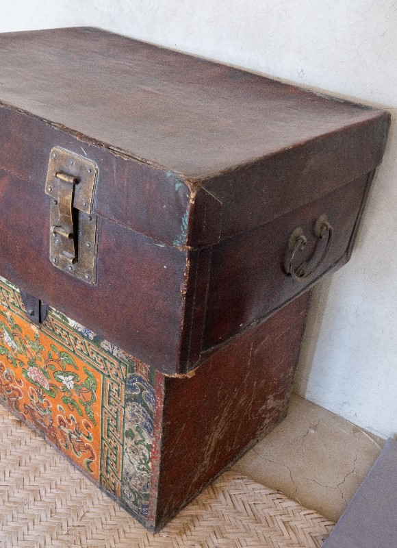 民国时期,中共绥蒙工委工作人员在桃力民地区工作时用来存放衣物的红漆皮箱,材质为皮、木。民间征集、器型完整。现存于桃力民抗日革命根据地旧址集群绥蒙工委复原院落。