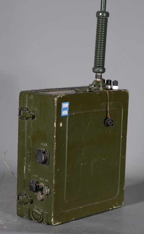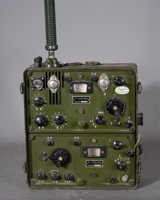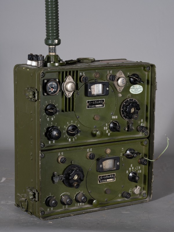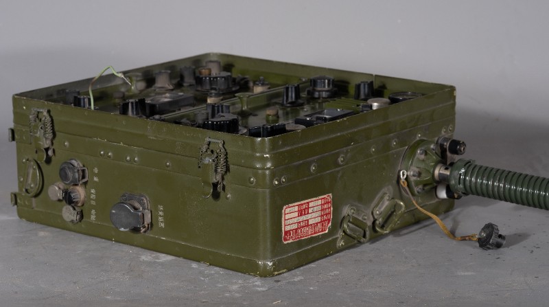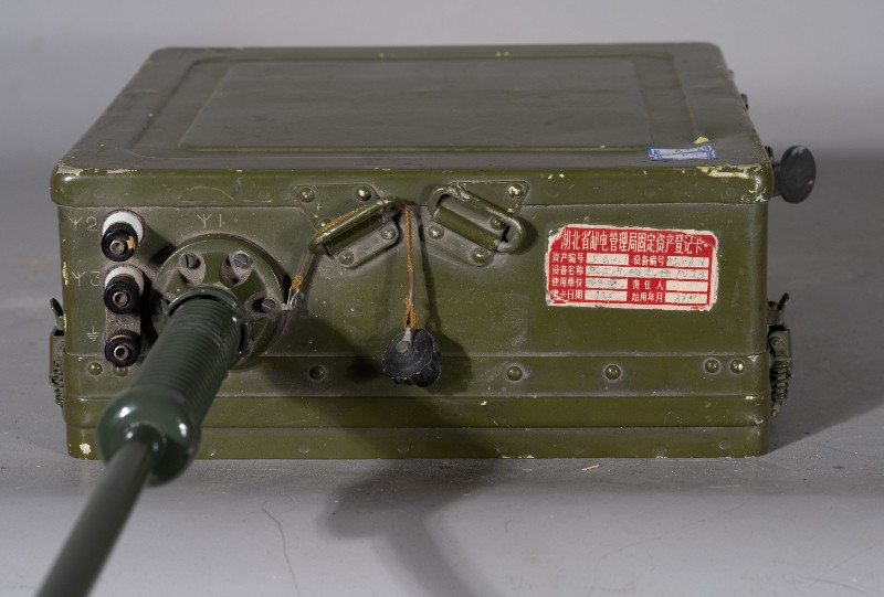 上世纪70-80年代,桃力民地区工作人员宣传使用过的军用发报机,材质为铁、塑料、铜、玻璃,器身残缺,无发报按键。现存于桃力民抗日根据地史实陈列馆。