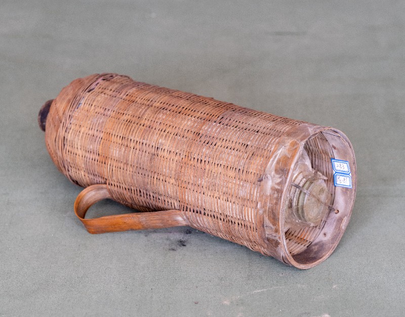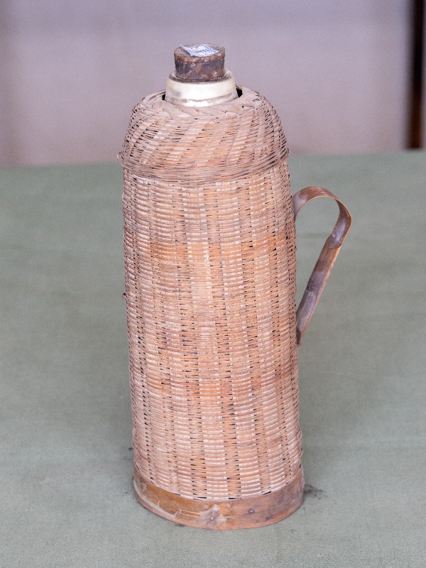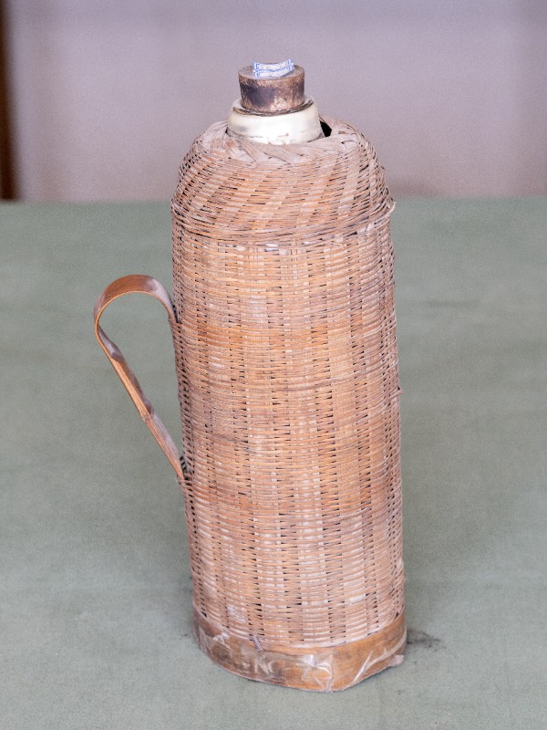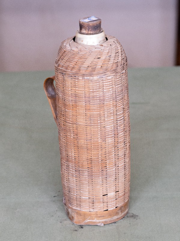 民国时期,伊克昭盟工委工作人员在桃力民地区工作时使用过的竹编暖壶,材质为竹、玻璃。民间征集、器型完整。现存于桃力民抗日革命根据地旧址集群伊盟工委复原院落。
