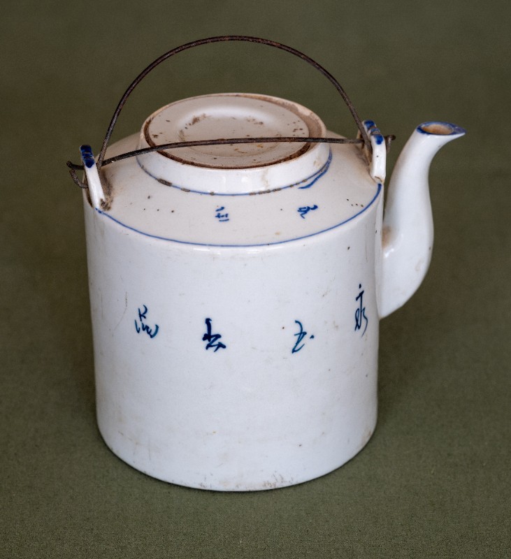 民国时期,中共绥蒙工委工作人员在桃力民地区工作时使用过的白瓷茶壶,材质为白瓷,壶身印有花鸟图案,上书“永玉出品”。民间征集、器型完整。现存于桃力民抗日革命根据地旧址集群绥蒙工委复原院落。