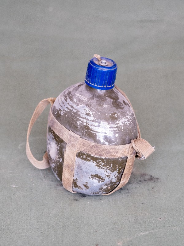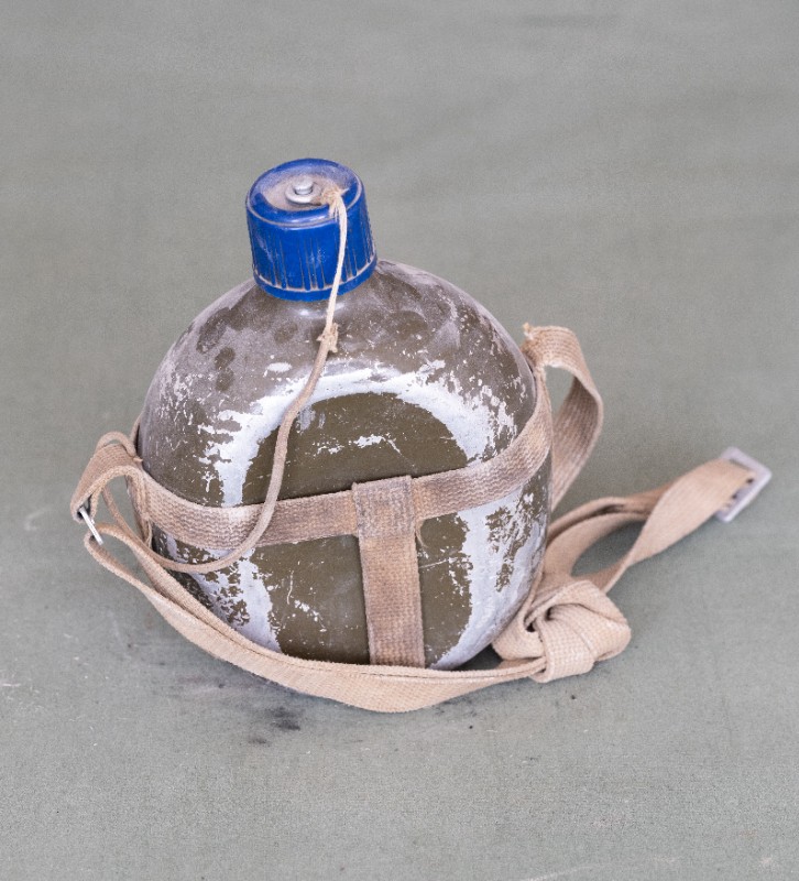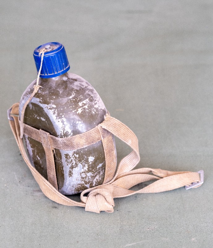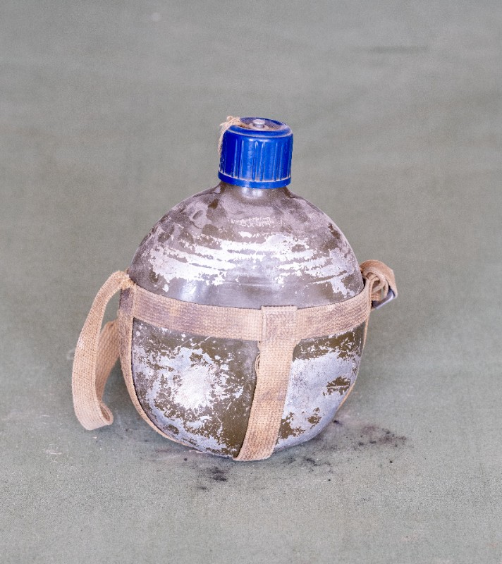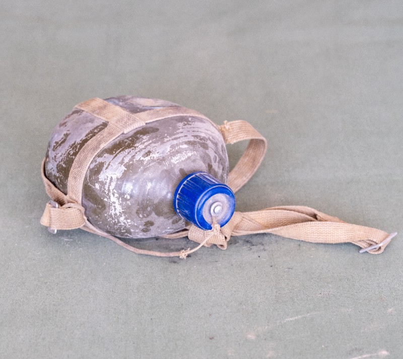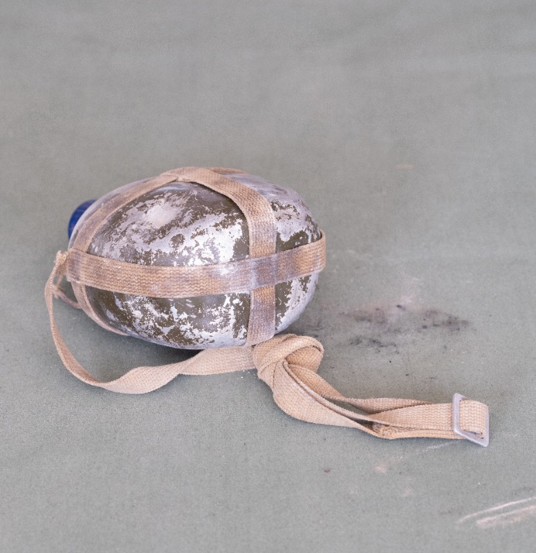 民国时期,伊克昭盟工委工作人员在桃力民地区工作时使用过的军用水壶,材质为铁。民间征集、器型完整。现存于桃力民抗日革命根据地旧址集群伊盟工委复原院落。