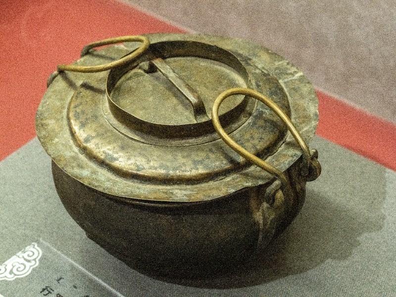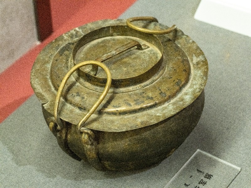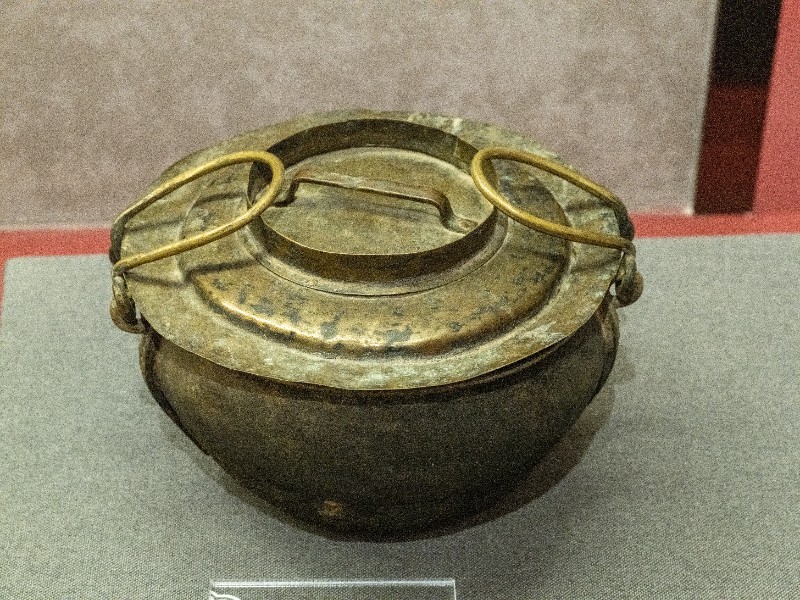 抗日战争时期,新三师官兵驻扎在桃力民地区时使用过的行军锅。材质为黄铜。器型完整。现存于桃力民抗日根据地史实陈列馆。