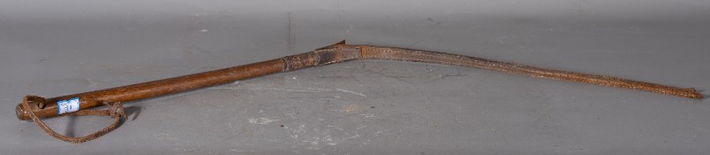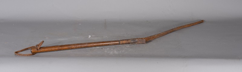 抗日战争时期,八路军骑兵团军官在桃力民地区使用过的军用马鞭,材质为木、牛皮,器型完整。现存于桃力民抗日根据地史实陈列馆。