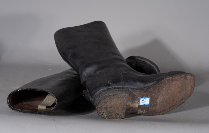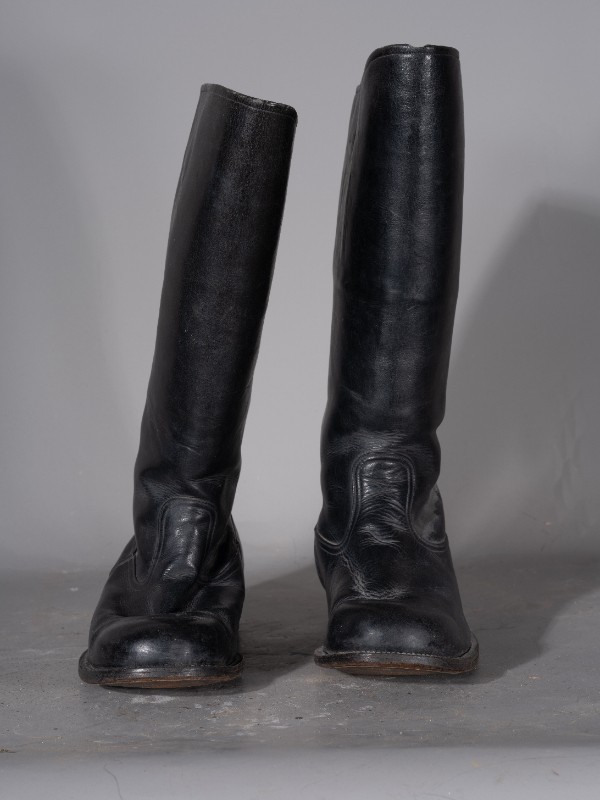 抗日战争时期,八路军骑兵团官兵在桃力民地区使用过的骑兵马靴,材质为牛皮,器型完整。现存于桃力民抗日根据地史实陈列馆。