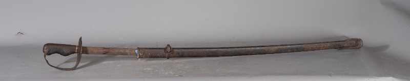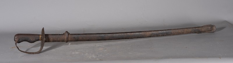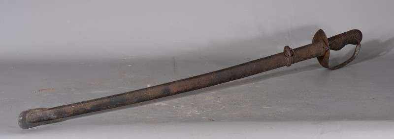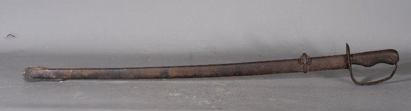 抗日战争时期,八路军骑兵团官兵在桃力民地区使用过的骑兵刀,材质为铁,器型完整。现存于桃力民抗日根据地史实陈列馆。