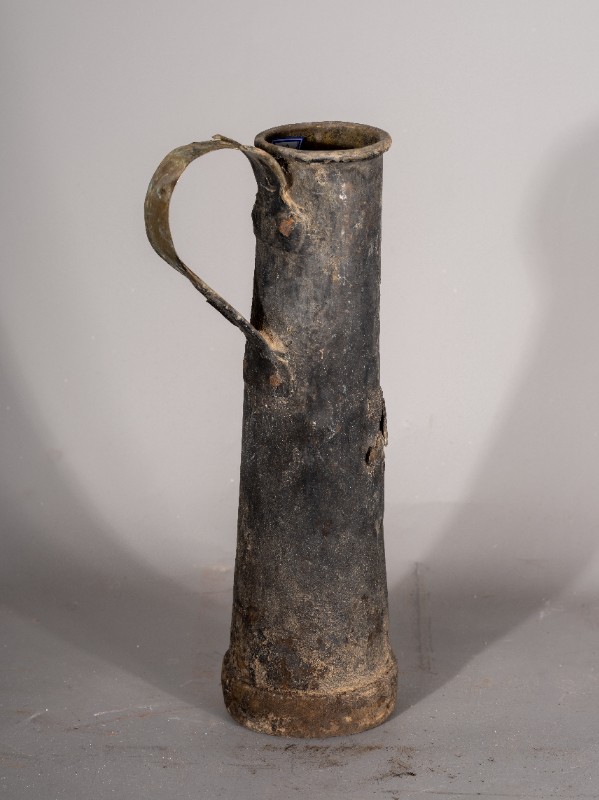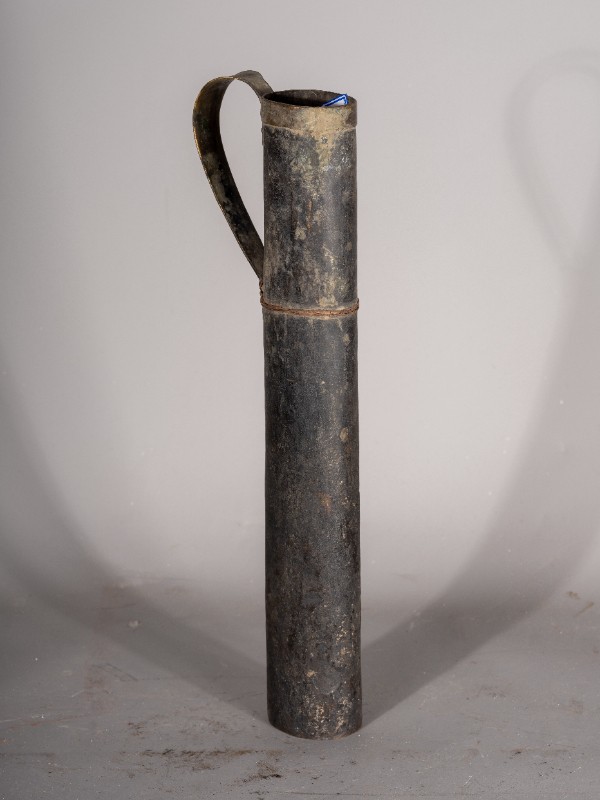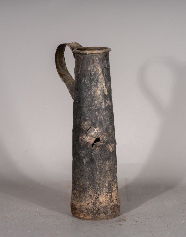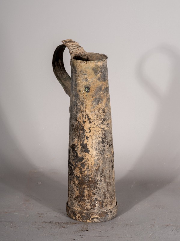 抗日战争时期,鄂尔多斯桃力民地区桃力民抗日自卫军使用过的铜油壶,材质为黄铜,器型较完整,部分有破损。现存于桃力民抗日根据地史实陈列馆。