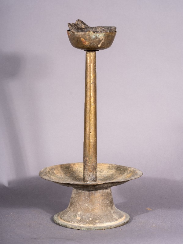 上世纪60年代,城川地区文化工作者使用过的铜油灯。