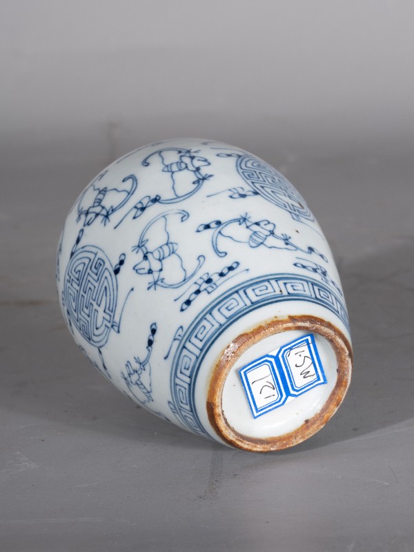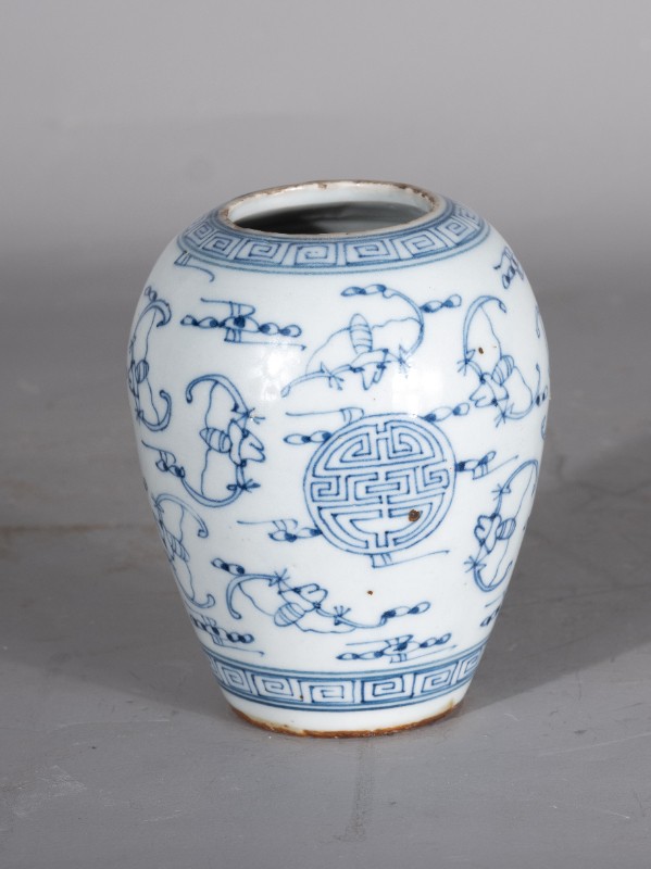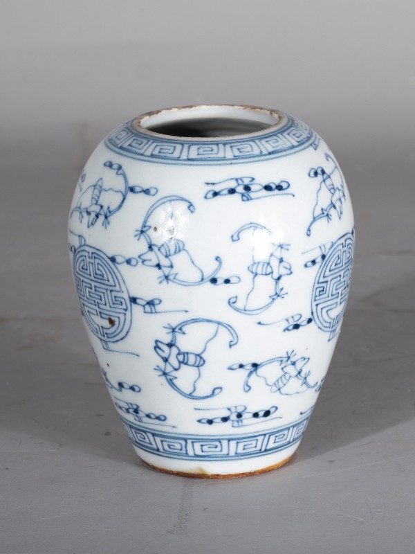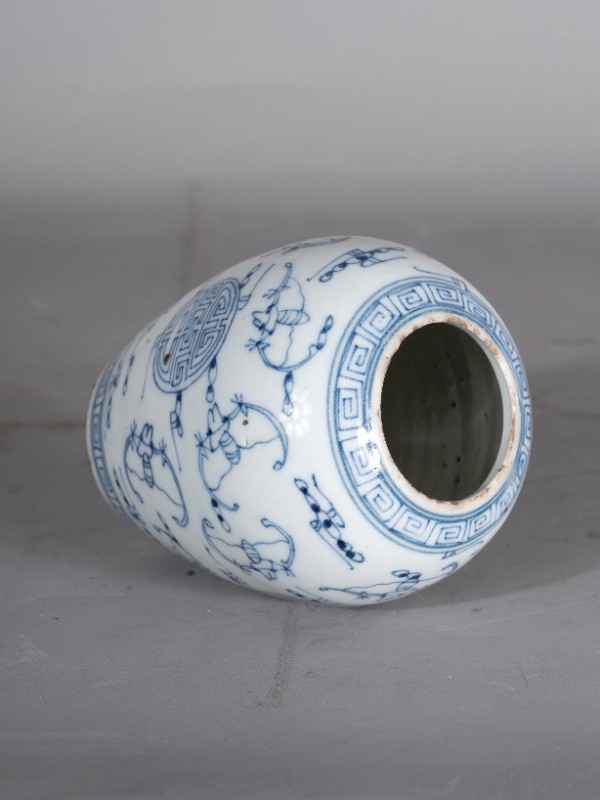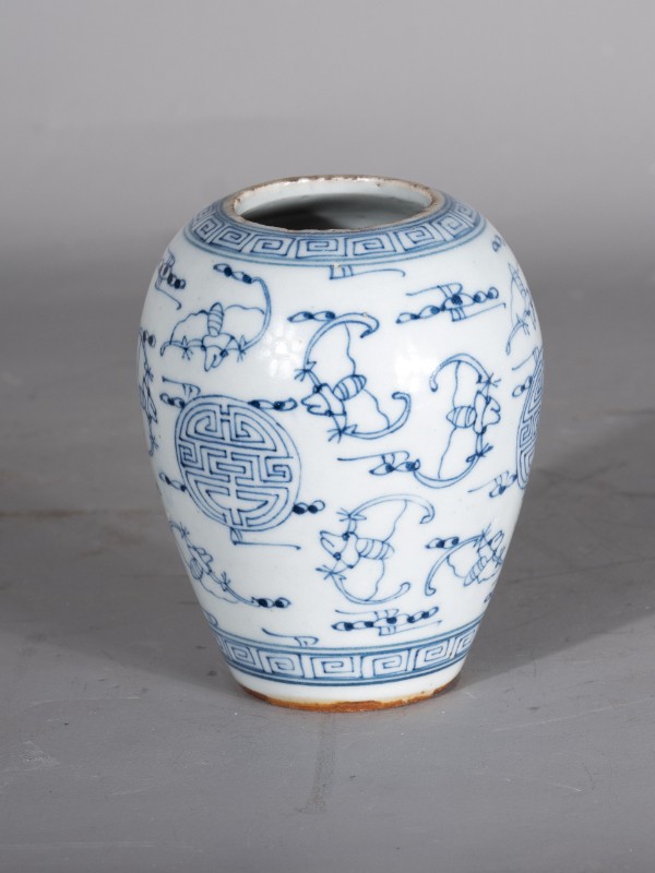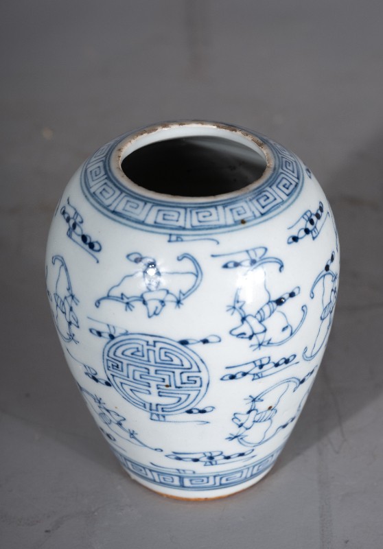 抗日战争时期,桃力民抗日自卫军在桃力民地区使用过的白底青花福寿纹瓷罐,材质为白底青花瓷器,器型完整。现存于桃力民抗日根据地史实陈列馆。