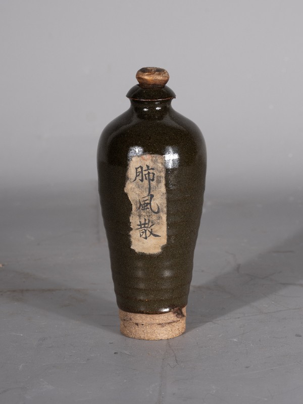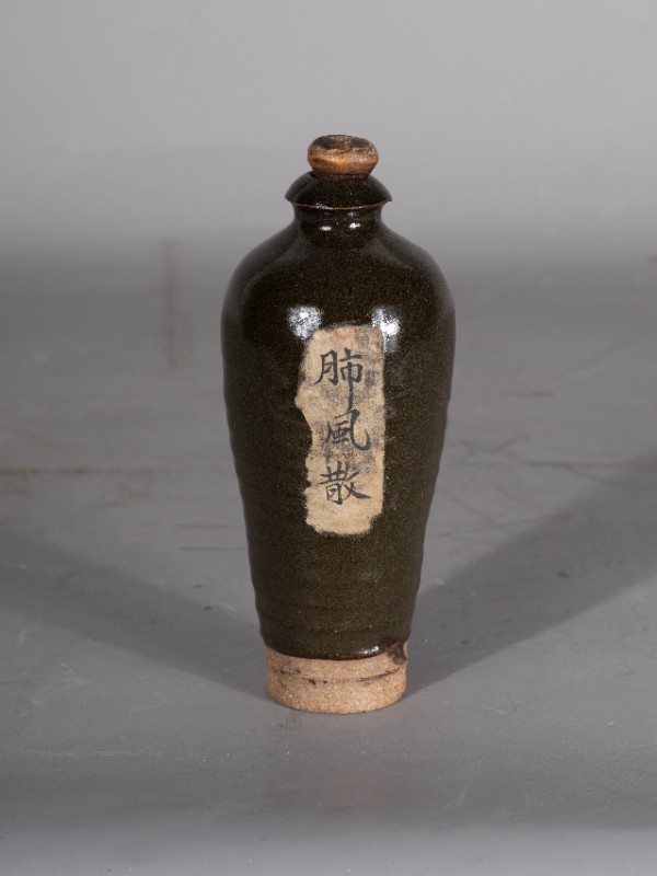 抗日战争时期,桃力民地区八路军医疗队使用过的肺风散瓷药瓶,材质为瓷,器型完整。现存于桃力民抗日根据地史实陈列馆。