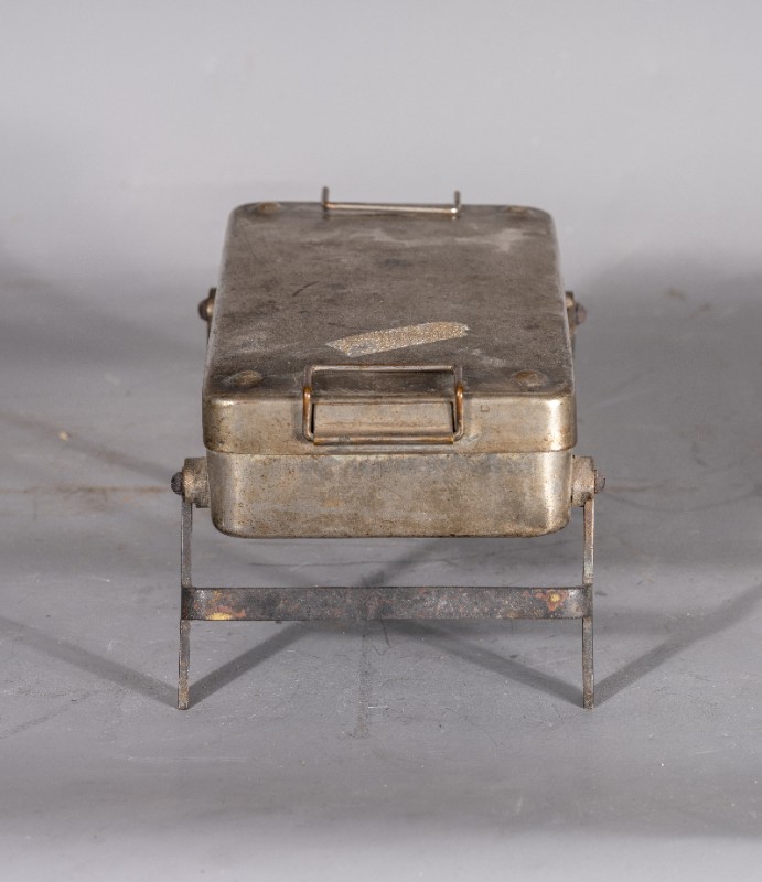 抗日战争时期,桃力民地区八路军医疗队使用过的消毒盘,材质为铁、镍,器型较完整,有锈迹。现存于桃力民抗日根据地史实陈列馆。
