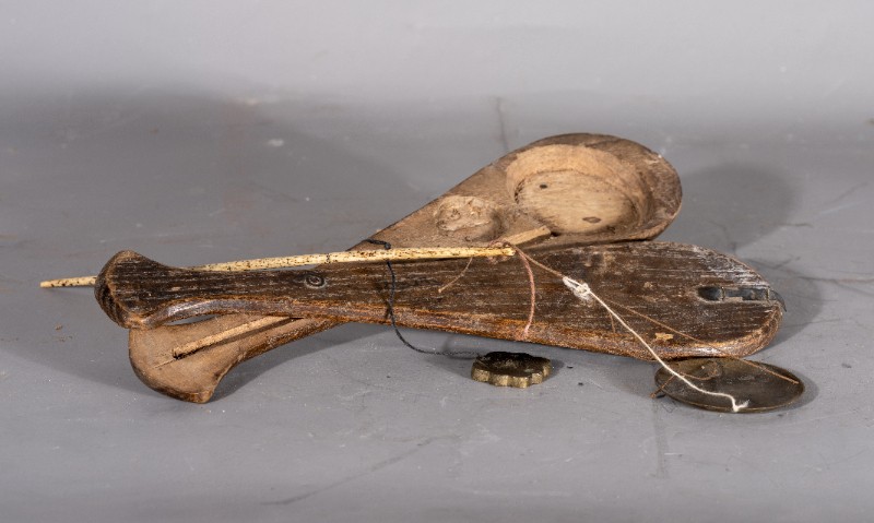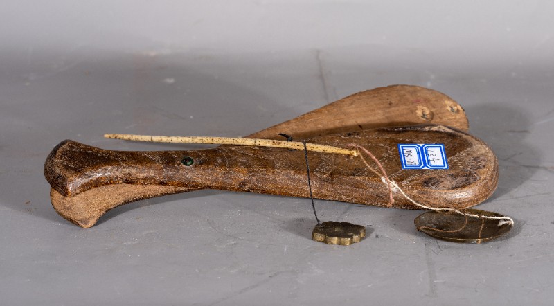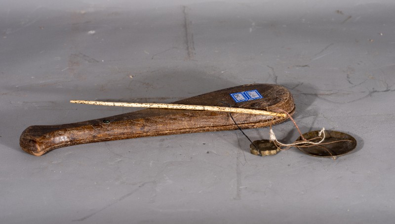 抗日战争时期,桃力民地区八路军医疗队使用过的药戥子,材质为木和铜,器型完整。现存于桃力民抗日根据地史实陈列馆。