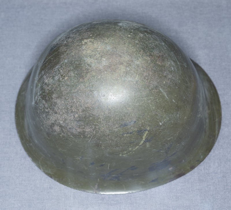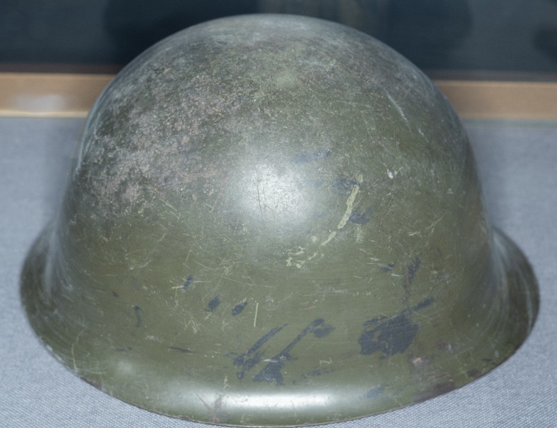抗日战争时期,新三师在黄河抗战前线缴获的日军钢盔,材质为钢。现存于桃力民抗日根据地史实陈列馆。