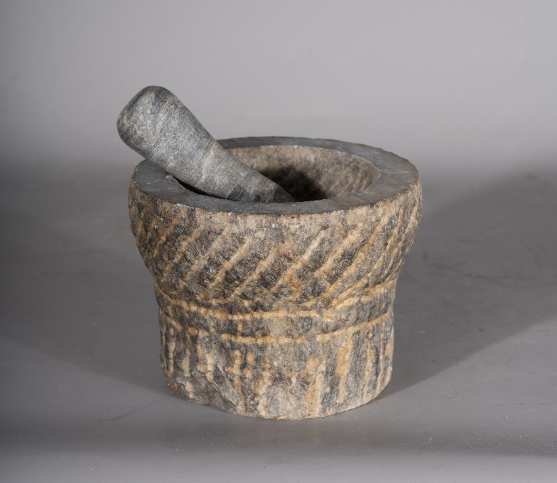 抗日战争时期,桃力民地区八路军医疗队使用过的碾药石杵,材质为石头,器型完整。现存于桃力民抗日根据地史实陈列馆。