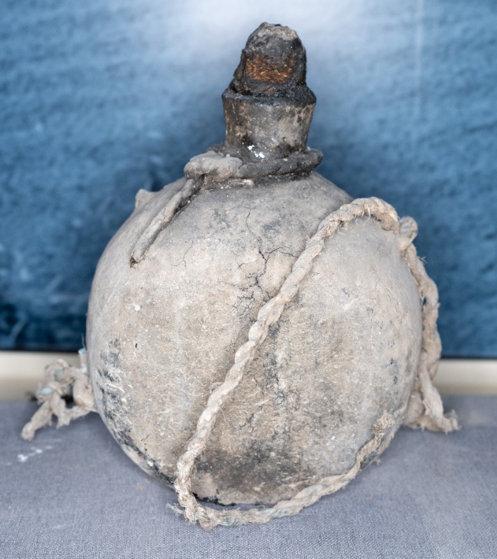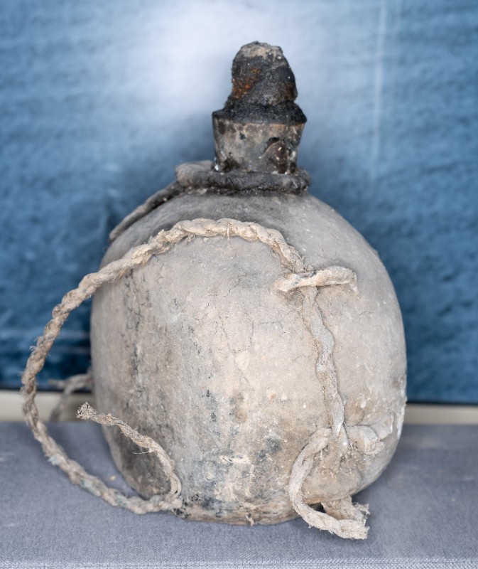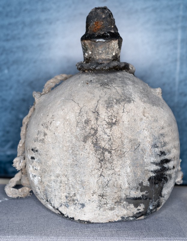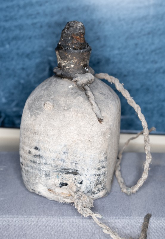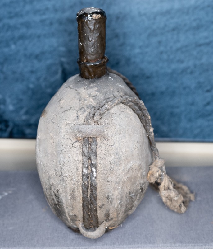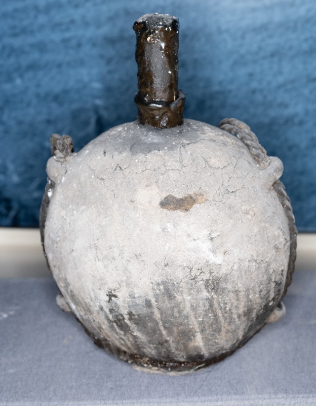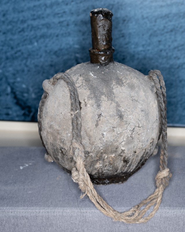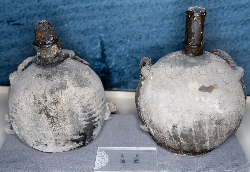 抗日战争时期,桃力民农救会在桃力民地区使用过的油壶,材质为皮、瓷、麻。现存于桃力民抗日根据地史实陈列馆。