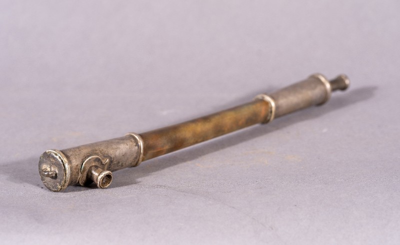 民国时期,城川开明人士使用过的清朝木镶银烟锅,收藏于城川民族学院纪念馆。